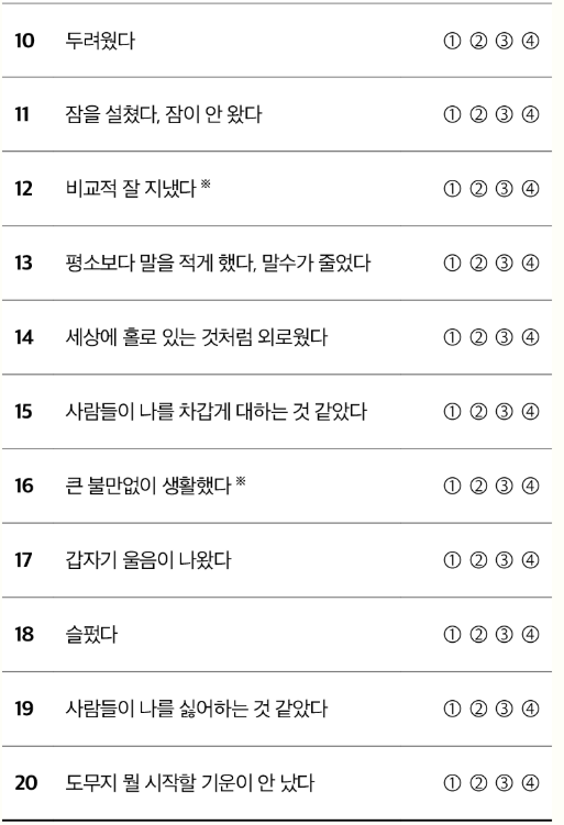 어떠한지 확인해 볼 수 있는 우울증 테스트와
