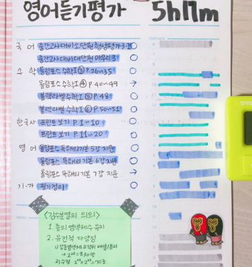 또한 공부시간 지도 같은 경우에도 스케줄을 짜서 공간을 채워 놓으면 내가 어느 시간에 집중을 못하고 있는지 또는 어느 시간에 여유가 많이 있는지를 한눈에 알아볼 수 있어서 좋아요.