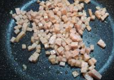 재료 : 밥, 햄, 고춧가루, 설탕, 간장, 깨소금, 참기름, 김치, 대파