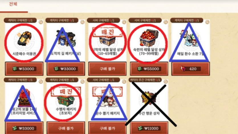 여기서 제가 무과금은 정상적으로 플레이가 불가능한 디자인이라고 말했는데 예를 들면 과금을 쓰면 바로 넘어갈 수 있는 부분에서 과금하지 않으면 시간과 노력의 투자가 수십 시간에서 수백 시간은 투입되는 요소들이 있는 경우를 의미합니다. 상식적인 플레이가 아닌 단순히 유저를 불편하게 만듦으로 인해서 과금을 부추기는 유형의 디자인을 의미합니다.