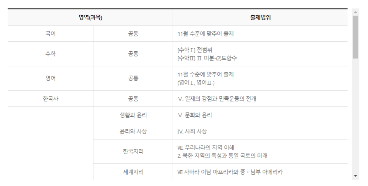 고등학교 2학년의 11월 모의고사 시험 범위 |