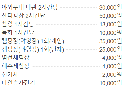 공원을 이용하는 데 별다른 요금은 없습니다만 아이가 있는 가정에서 놀러 와 이것저것 체험을 해보시려면 이용료가 발생합니다. 다만 현재 코로나로 인해서 체험에 제한이 있을 수 있으니 꼭 방문 전 미리 문의해보시기를 바랍니다.