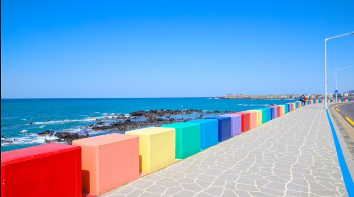 도두동 해안도로에는 일곱 가지 색깔의 블럭들이 사진을 찍기 좋게 마련되어 있어서 이곳에서는 대충 찍어도 제주도의 아름다운 자연과 특유의 자유로움을 사진 한 장에 담아내기에, 충분한 곳이기도 합니다.