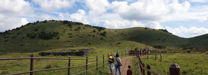 용눈이 오름 같은 경우에는 20~30분 정도로 가벼운 산책 수준의 코스이며 바람과 구름 그리고 억새까지 자연스럽게 어우러진 풍경을 감상하면서 걷다 보면 사진을 찍을 포인트들도 많고 지루하지 않게 제주도 오름의 멋을 느끼실 수 있을 거예요.