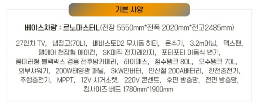 사실 캠핑카치고는 상당히 합리적인 가격대라고 봅니다.